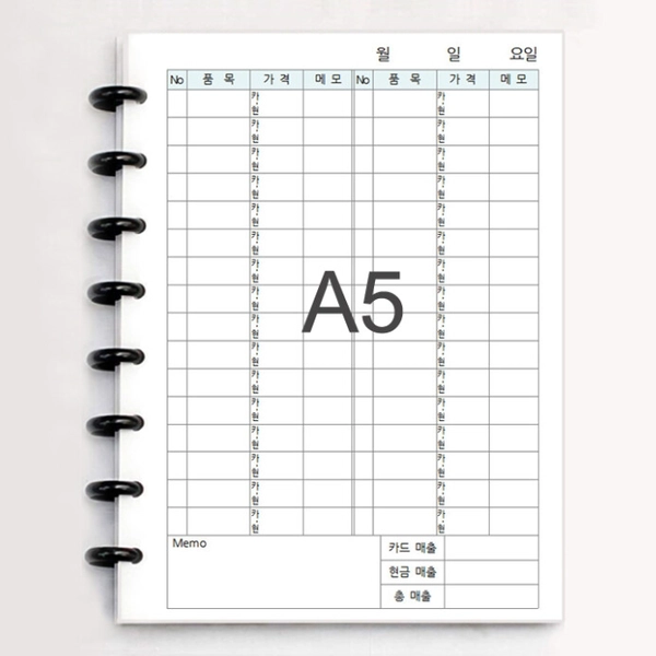 - 월별정리페이지 6p + 데일리 매출장부 180p